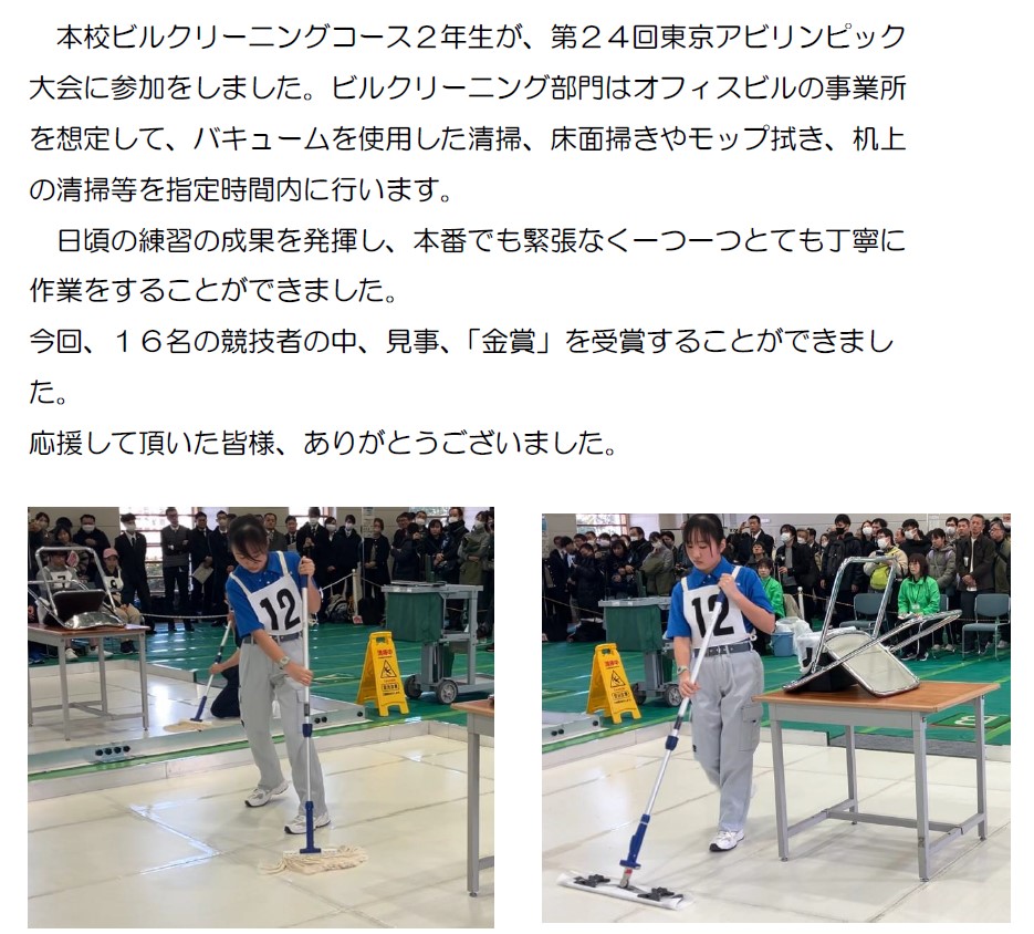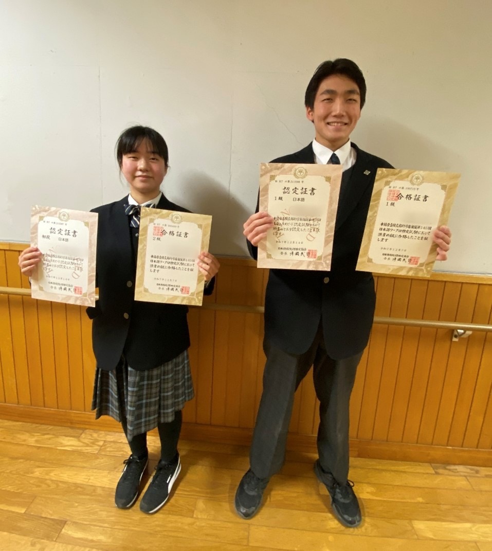 文章入力スピード認定試験は1級が2名(2年1名・3年1名)、